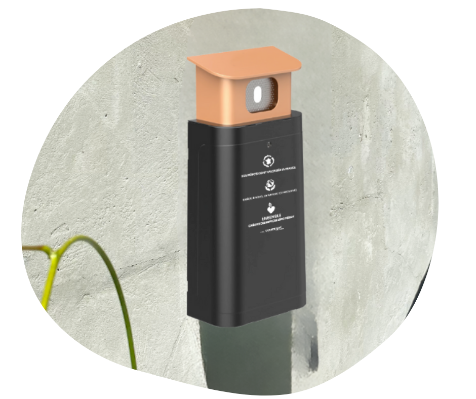 Le Point d’Apport Volontaire (PAV), un modèle qui permet de recycler les mégots de cigarette après les avoir collectés dans les cendriers de poche. Sa personnalisation est tout à fait possible ;
